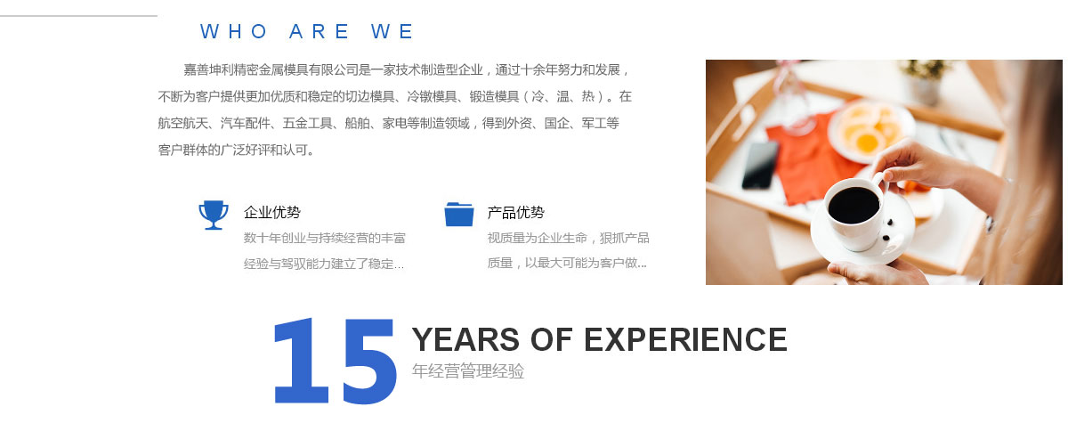 公司于2005年涉足切邊模具行業,歷經多年、不斷進取、不斷更新產品質量,在整頭切邊模方面我們擁有一批精英人才,我們的技術獨特,工藝學習歐美等國。
